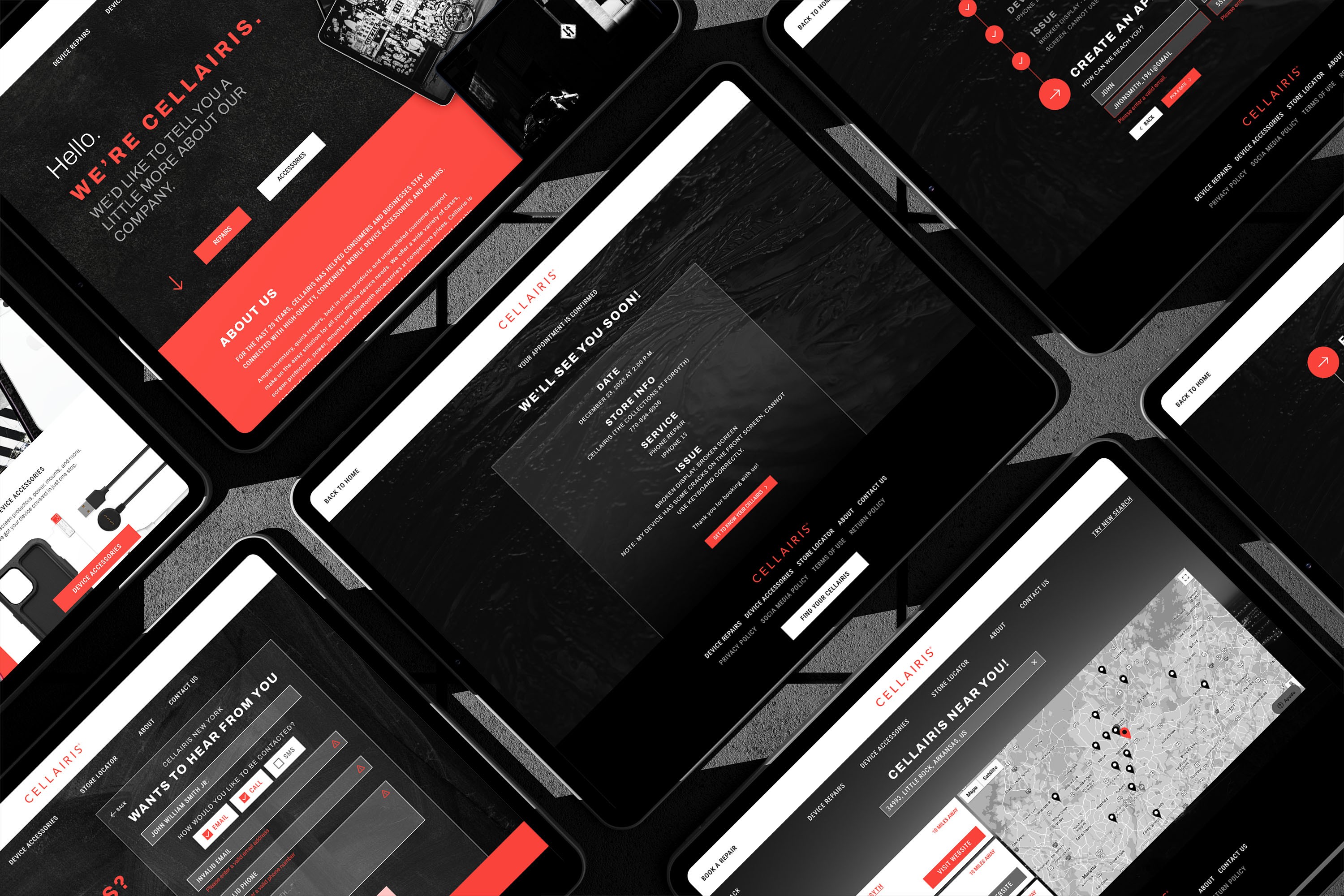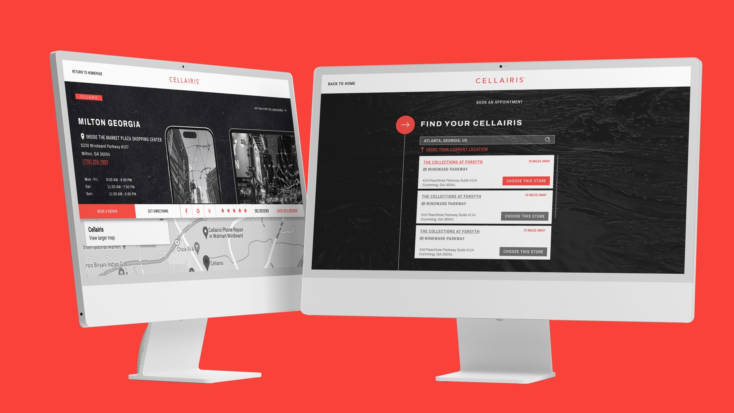 Microsites Development: Created design concepts for microsites dedicated to each registered Cellairis store, enabling localized branding and information for individual locations. These designs were tailored to meet the unique needs of various markets while ensuring brand consistency.