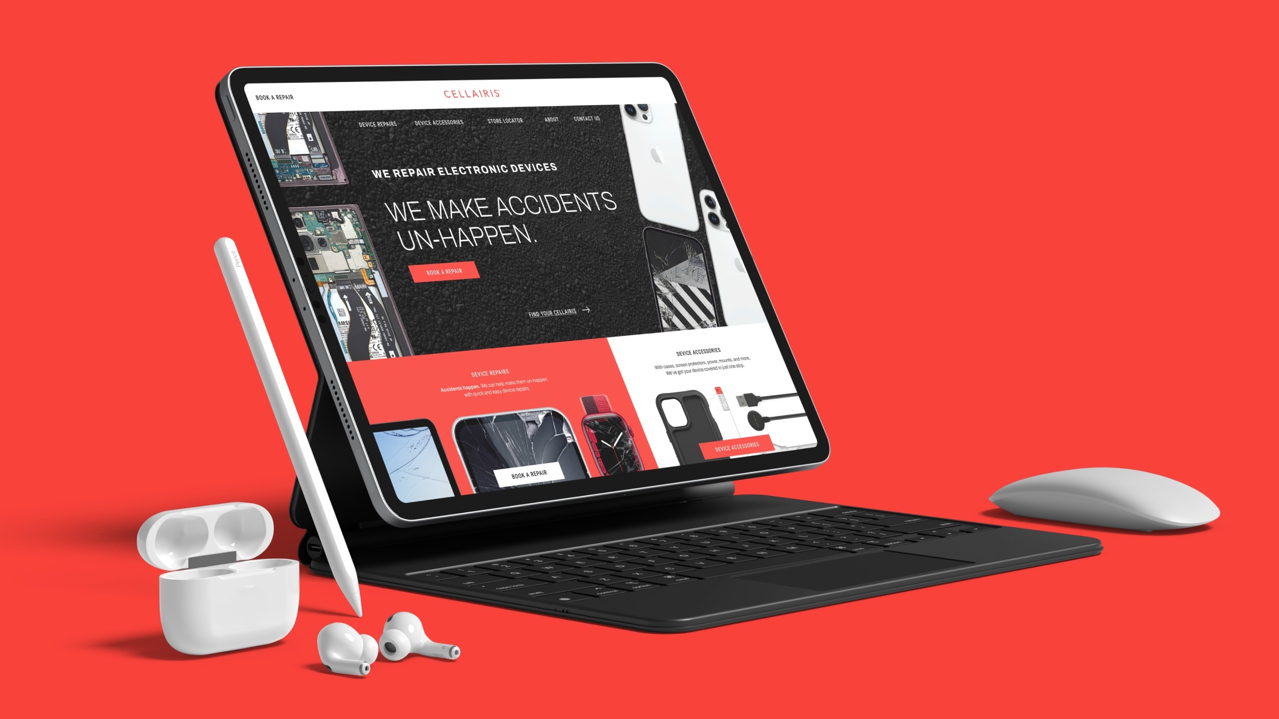 The redesign of the Cellairis website marked a pivotal transformation from an outdated platform to a modern, user-centric digital experience. While working as part of the AdCentral product team, my contributions focused on designing user-friendly and visually appealing interfaces that aligned with Cellairis’ branding and enhanced overall user experience. By focusing on intuitive navigation and seamless functionality, the redesigned website aimed to better serve users seeking device repairs, accessories, store locations, and more.