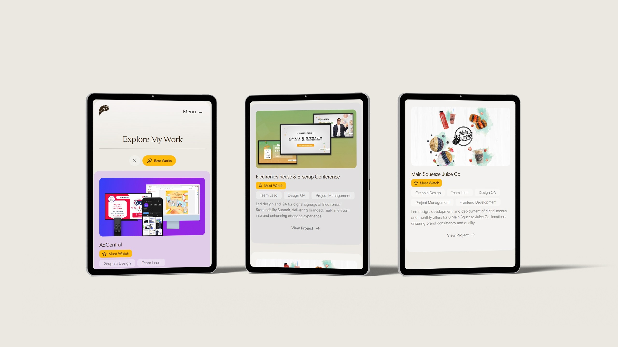 Dynamic Project Filters: Introduced project filters to allow users to sort Karen’s projects by category or type, improving navigation and organization.