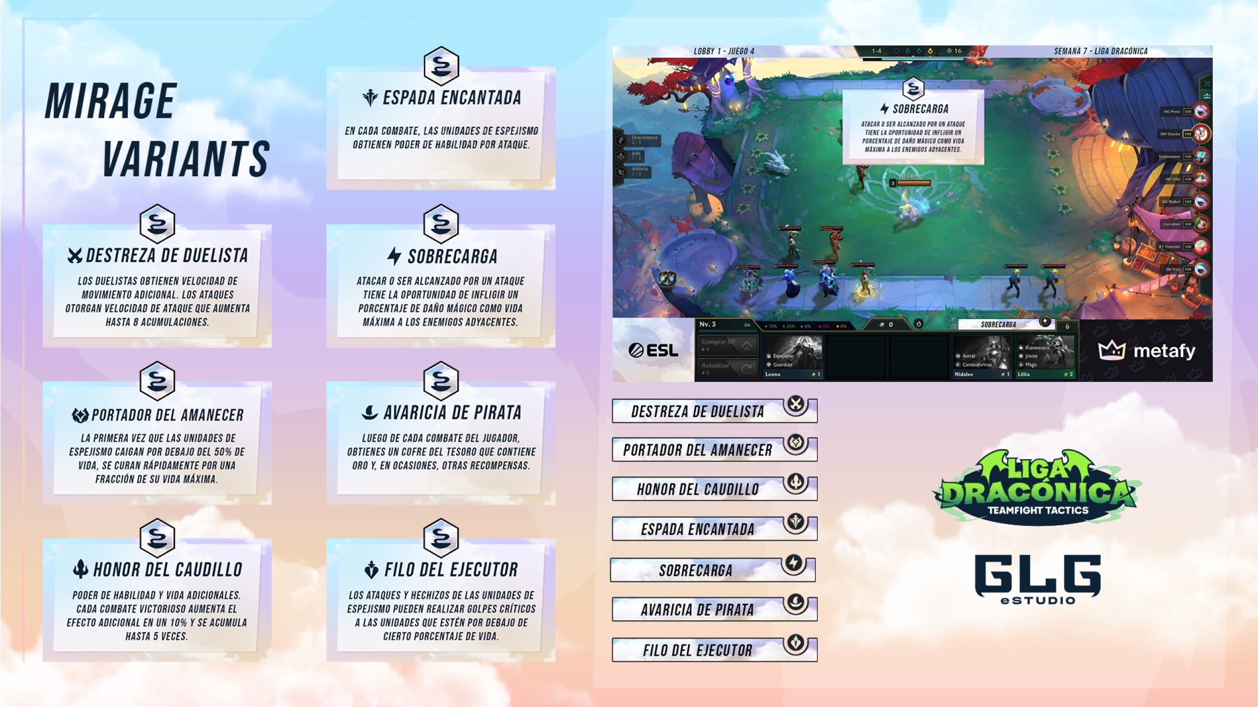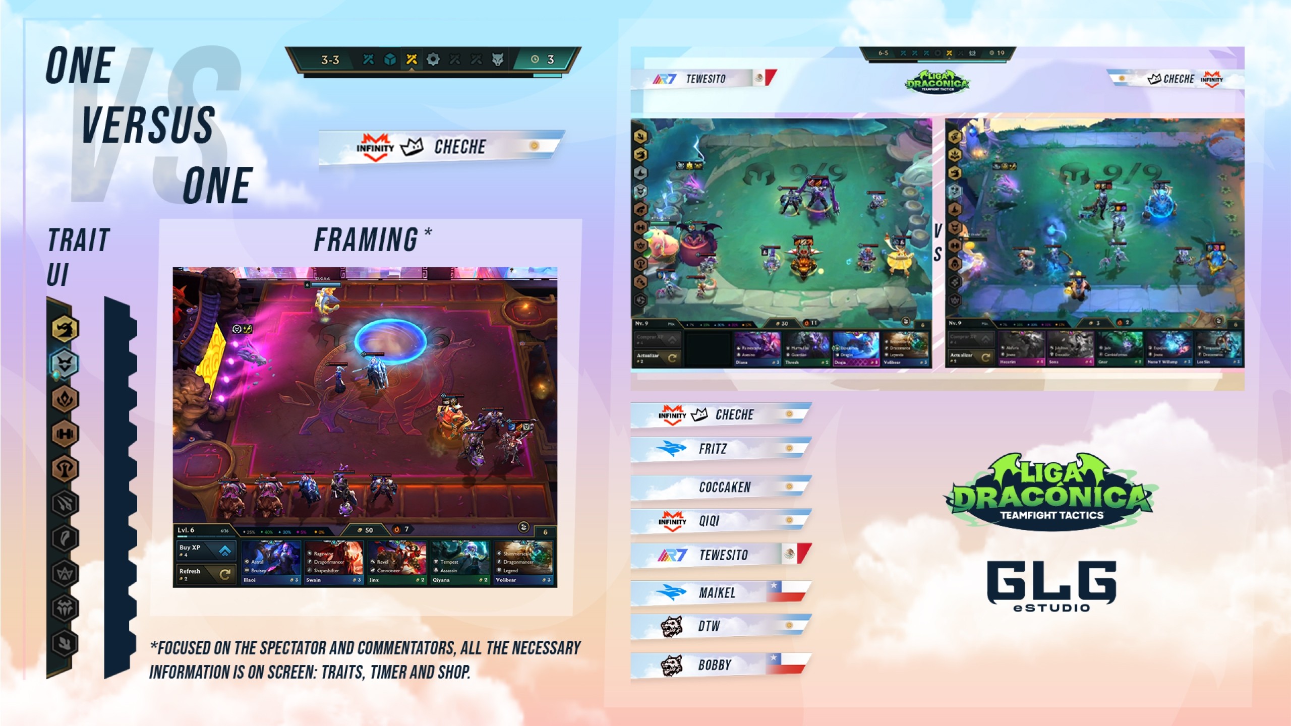 Our team at GLG eStudio was responsible for the production and design of one of the official broadcasts for Liga Dracónica. We focused on creating a dynamic and engaging viewing experience that reflects the competitive spirit of TFT.